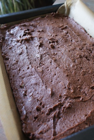 Schept als laatste de amandelschilfers onder het deeg en spreid het uit in een lage, met bakpapier bedekte bakvorm. Zorg ervoor dat het deeg overal even dik verspreid is.